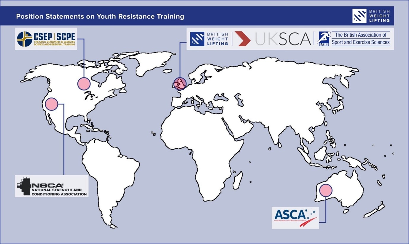 However, leading position statements advocating the relative safety of youth resistance training have been published by British Weight Lifting (BWL), the UK Strength and Conditioning Association (UKSCA), British Association of Sport and Exercise Sciences (BASES), Australian Strength and Conditioning Association (ASCA), National Strength and Conditioning Association (NSCA) and the Canadian Society of Exercise Physiology (CSEP). In addition, in 2014 an international position statement was published, which was endorsed by 10 leading authorities from the fields of strength and conditioning, paediatric exercise science, sports science and sports medicine.