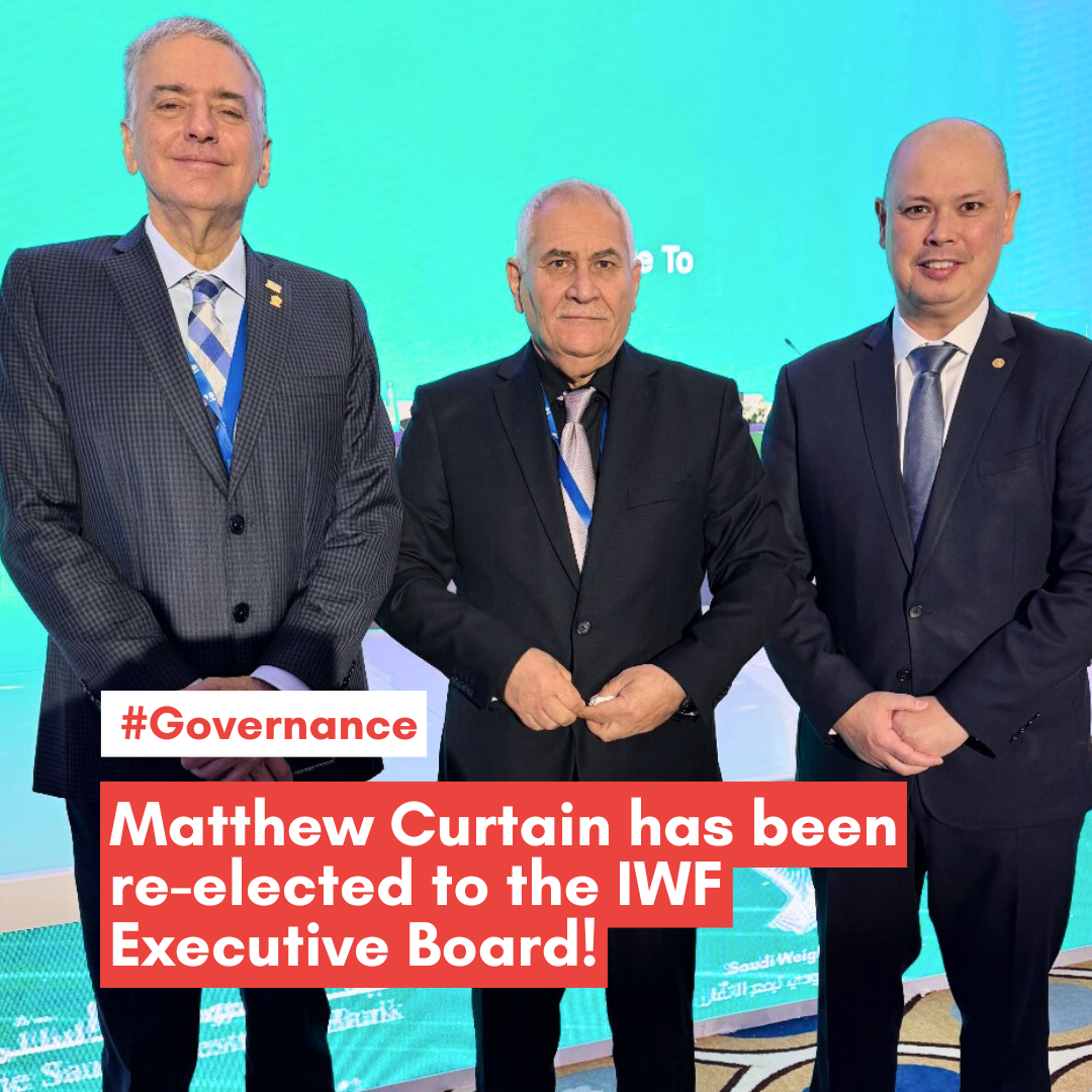 The IWF Electoral Congress also confirmed Mohammed Jalood (IRQ) as IWF President, José Quiñones (PER) as General Secretary, and Ursula Papandrea (USA) as First Vice-President. Mohammed AlHarbi (KSA) and Chengliang Liu (CHN) were elected as Vice-Presidents.